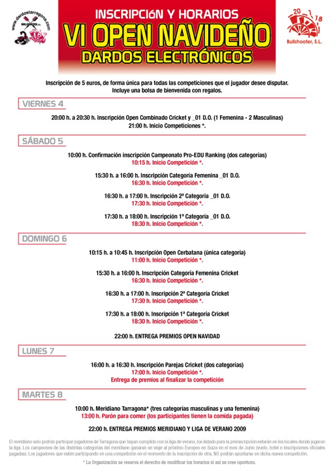 Aquí tenéis el detalle de la programación del open, que este año durará los 5 días del puente. Esperamos gran éxito de participación y poder saludar a todos los darderos que se desplacen del resto de España.